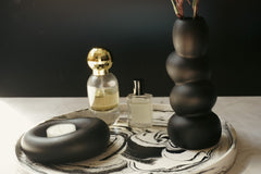 Jesmonite is a durable yet delicate material that requires gentle care to keep it looking its best. Avoid prolonged exposure to water, harsh chemicals, and direct sunlight to maintain its color and finish. For light cleaning, use a soft, damp cloth and gently wipe the surface. To learn more about caring for your Jesmonite pieces, click here.